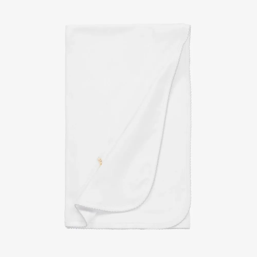 Gentle on delicate skin, this white blanket for baby boys and girls by Kissy Kissy is made from soft Pima cotton jersey. Neatly finished with a pale grey picot trim around the edge, it has delicately hand-embroidered jungle animals on one corner for an adorable look.