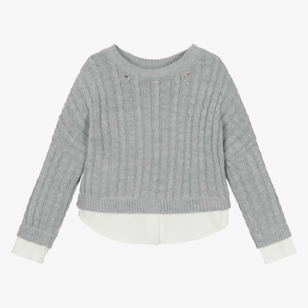 Lapin House Tops*Girls Grey Cable Knit Layered Sweater