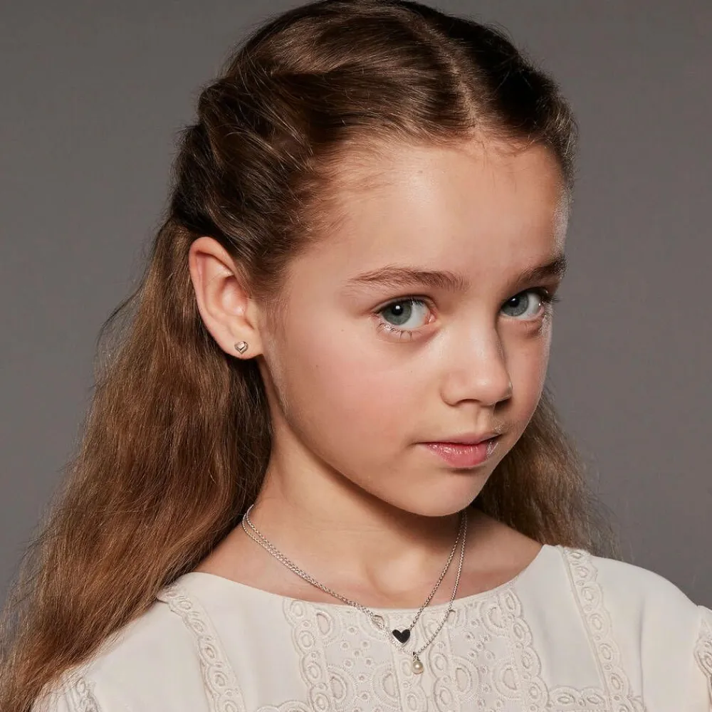 A sweet sterling silver necklace for girls by British brand Little Star, with a sparkly diamond star set on the heart pendant. Lovely and understated to wear as an accessory for any occasion, the fine chain necklace secures with a clasp and is adjustable to an ideal length. Presented in a storage pouch with a Little Star gift box and bag, it makes a thoughtful gift for a celebratory and special moment for little ones to keep and cherish.