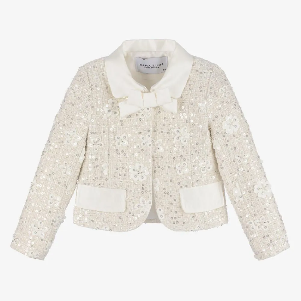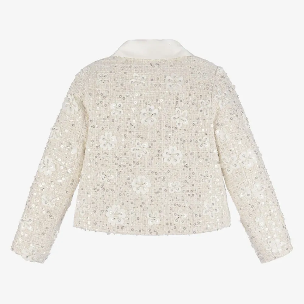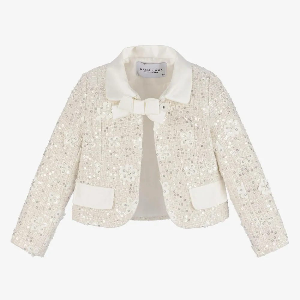 Mama Luma Coats & Jackets*Girls Ivory Sequin Tweed Jacket