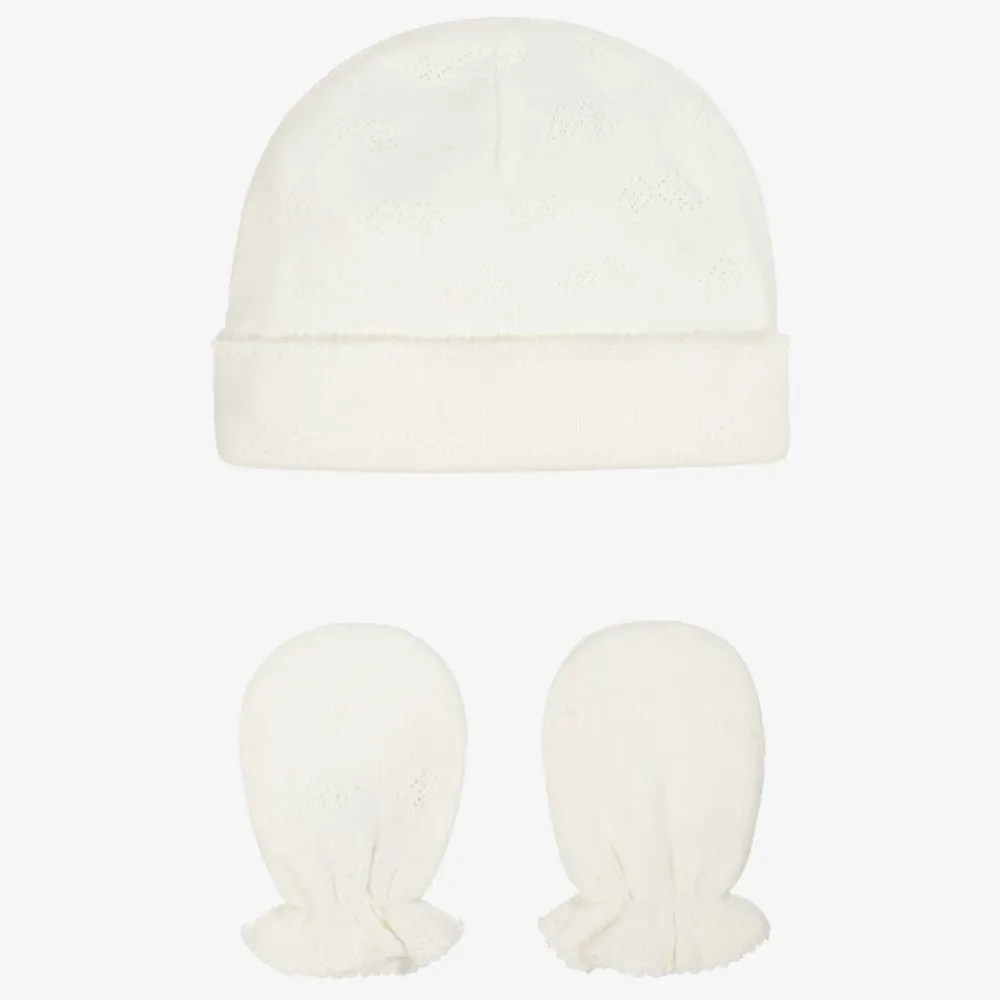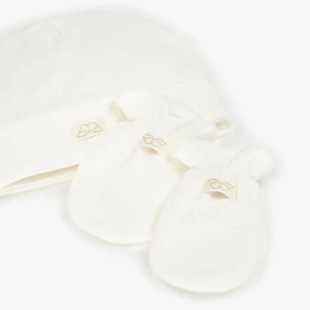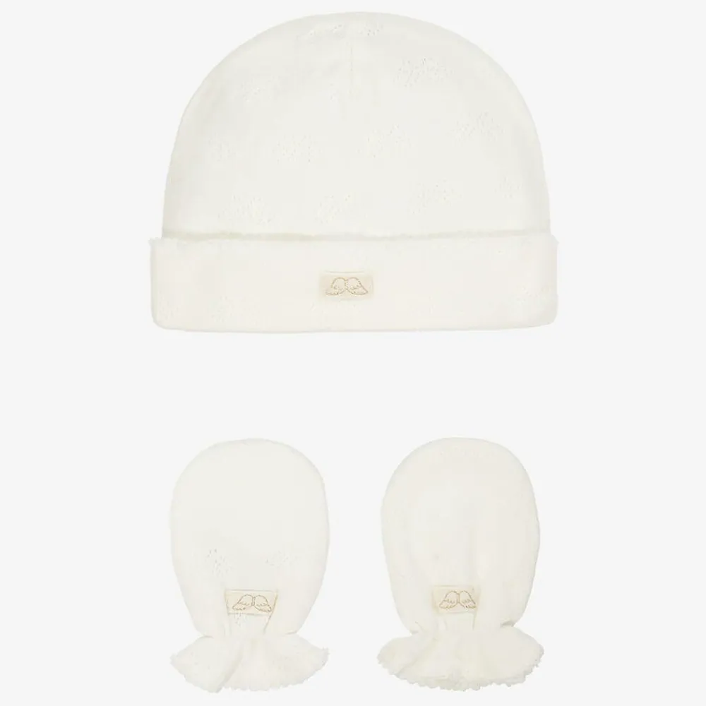 Marie-Chantal Hats|Hats*White Cotton Angel Wing Hat & Mittens Set