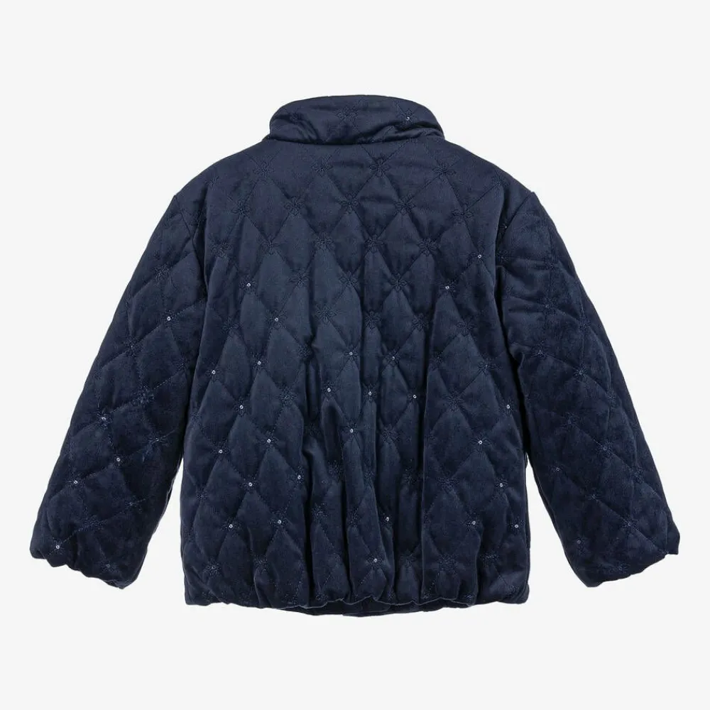 Mayoral Coats & Jackets*Girls Navy Blue Quilted Velvet Jacket