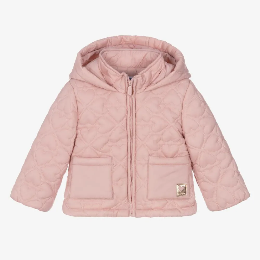 Mayoral Coats & Jackets*Girls Pink Hearts Quilted Jacket