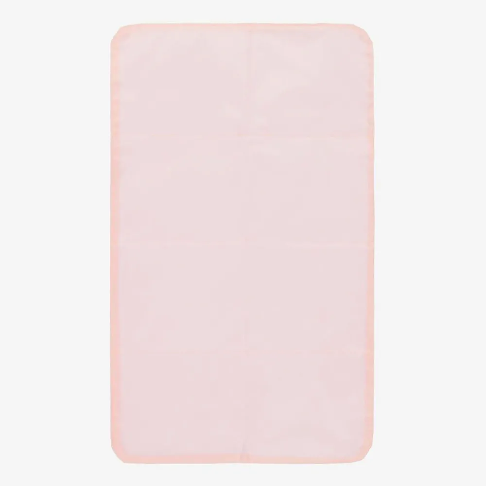 Pink changing backpack for girls by Mayoral, made in soft faux leather. It has a cute white heart print all-over with beige trims and a silver logo print on the front pouch pocket. Fastening with a smooth zip, the main compartment contains an internal pouch pocket, an attached bottle holder and a useful changing mat. It has a useful carry handle, adjustable, padded shoulder straps, and velcro fastening stroller straps to attach to the back of a buggy.