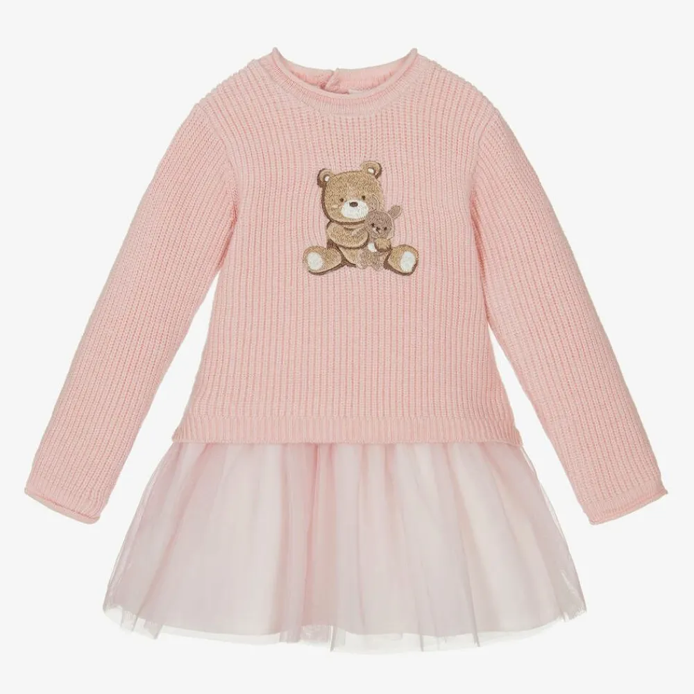 Mayoral Newborn Dresses*Baby Bears Pink Knit & Tulle Bear Dress