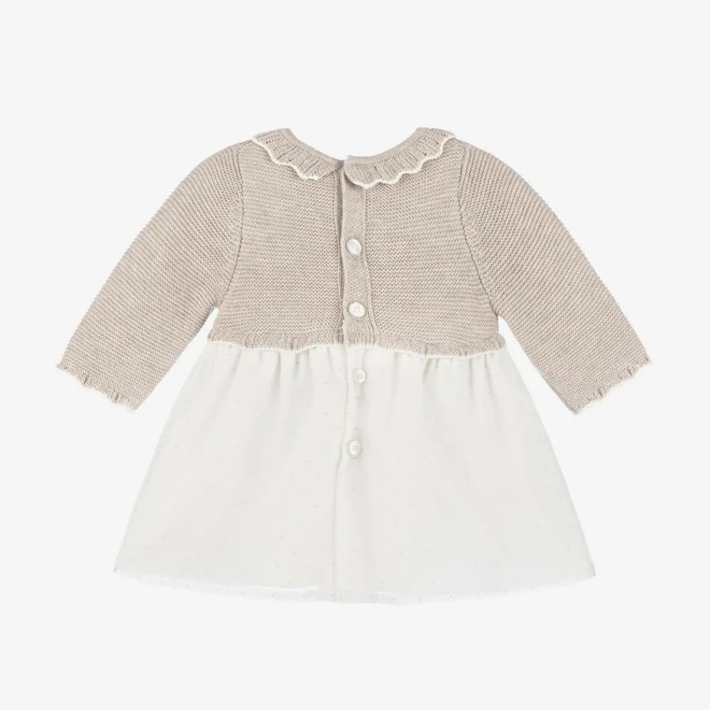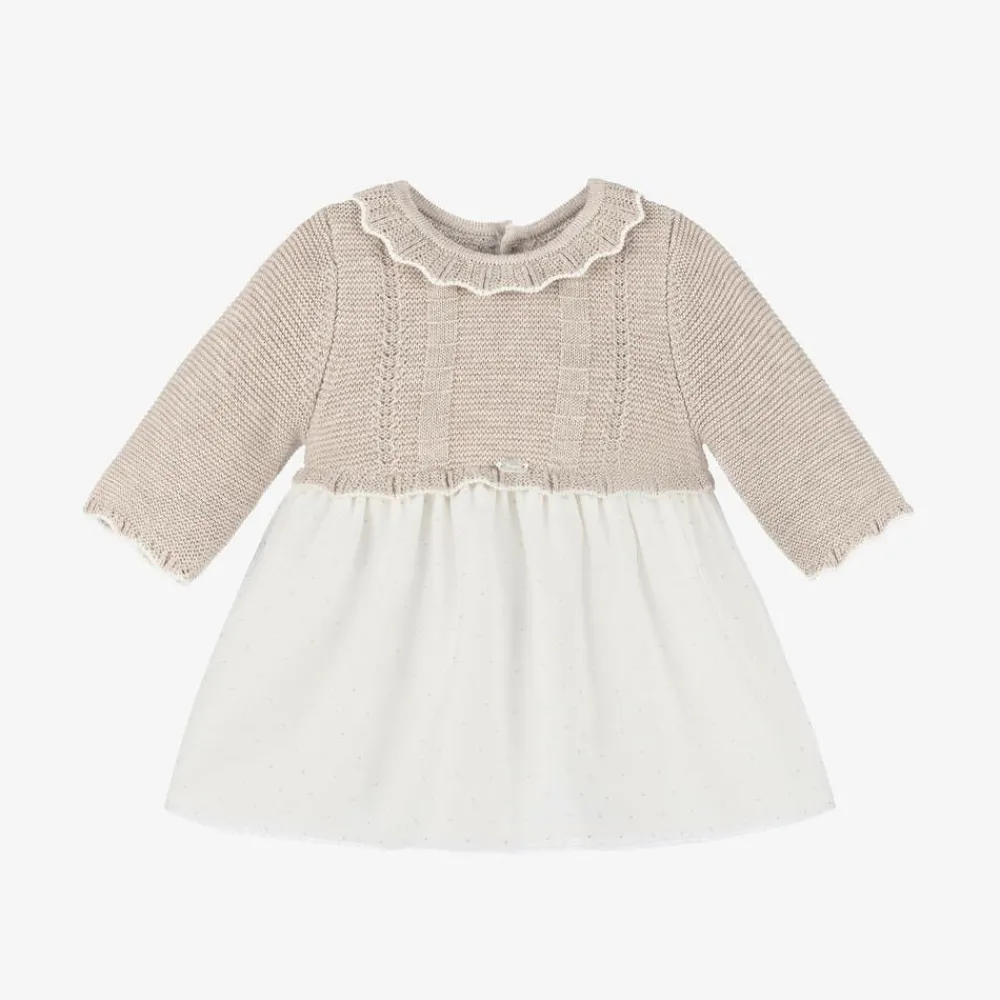 Mayoral Newborn Dresses*Baby Girls Beige Knit & Organza Dress