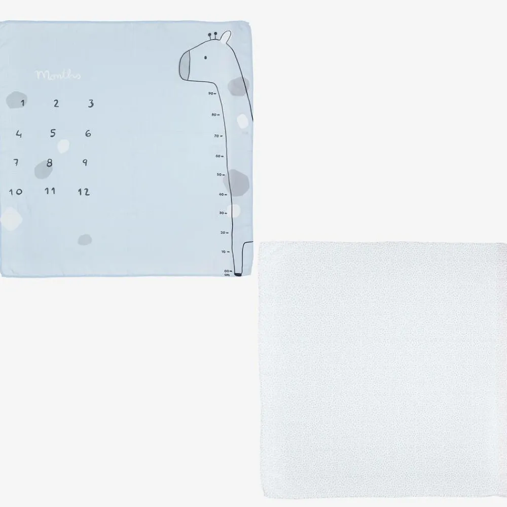 An adorable set of blue and white cotton swaddles by Mayoral is an adorable way to make memories of your baby's first months and measurements. Printed with height and month markers, simply lay your little one on the soft muslin, and use the felt cloud shape to record their milestones in your photographs. Soft against delicate skin, both swaddles can be used for sleep time, as well as a burping cloth or nursing cover.