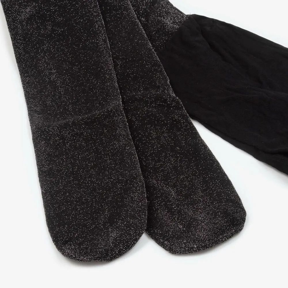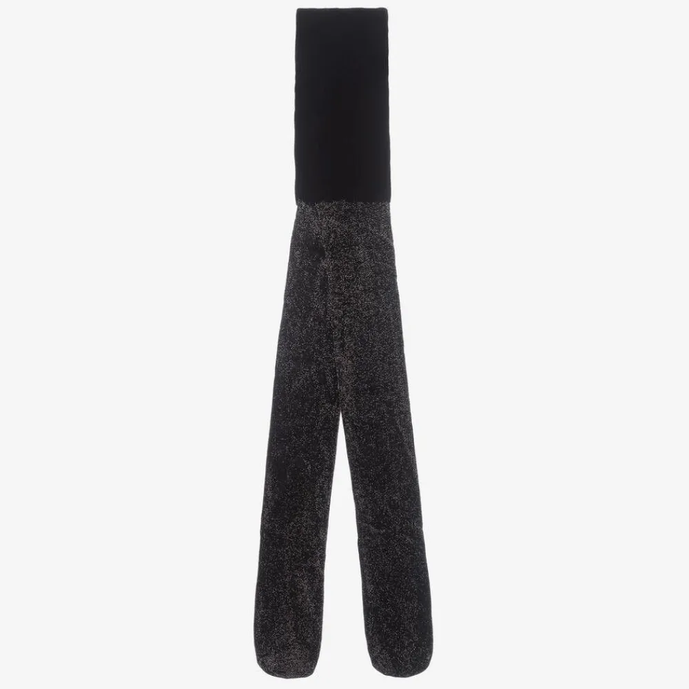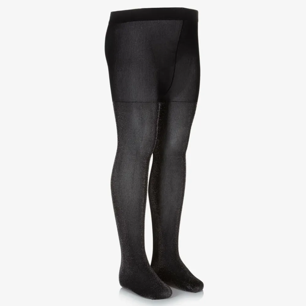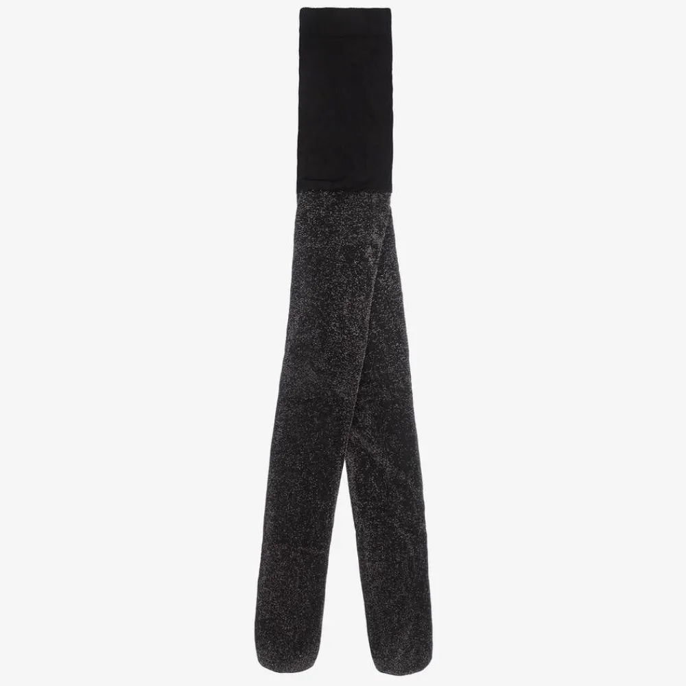 Stylish black and silver lurex tights for girls from Mayoral. Finely knitted and stretchy, they are a lovely complement to a smart or special occasion look.