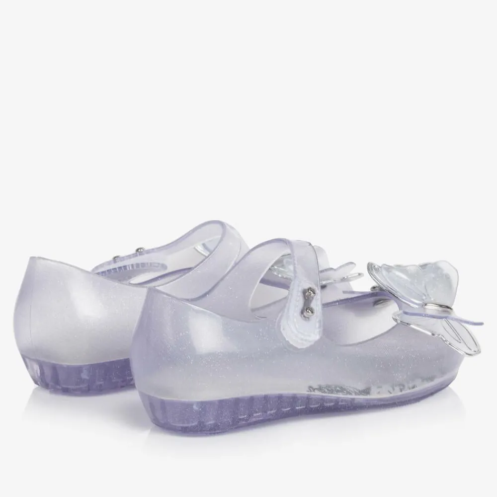 Mini Melissa Jelly Shoes|Jelly Shoes*Girls Silver Glitter Butterfly Jelly Shoes
