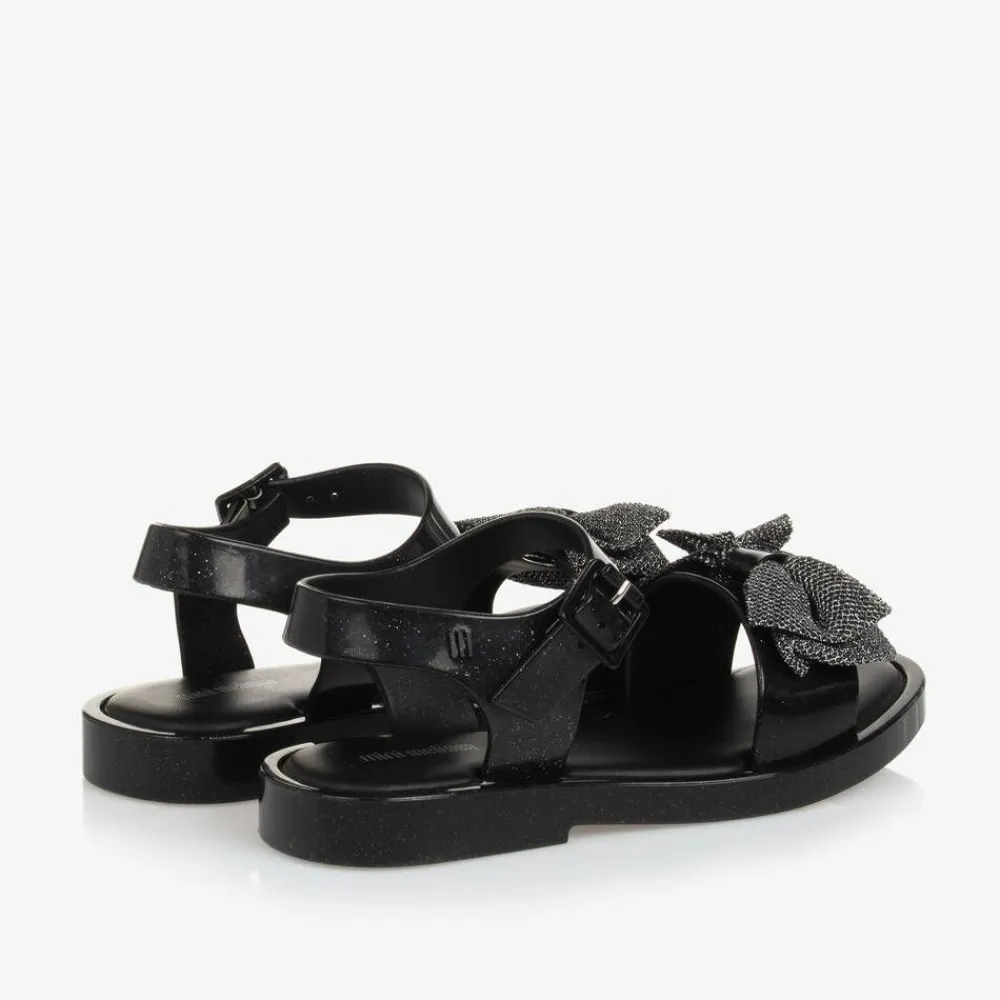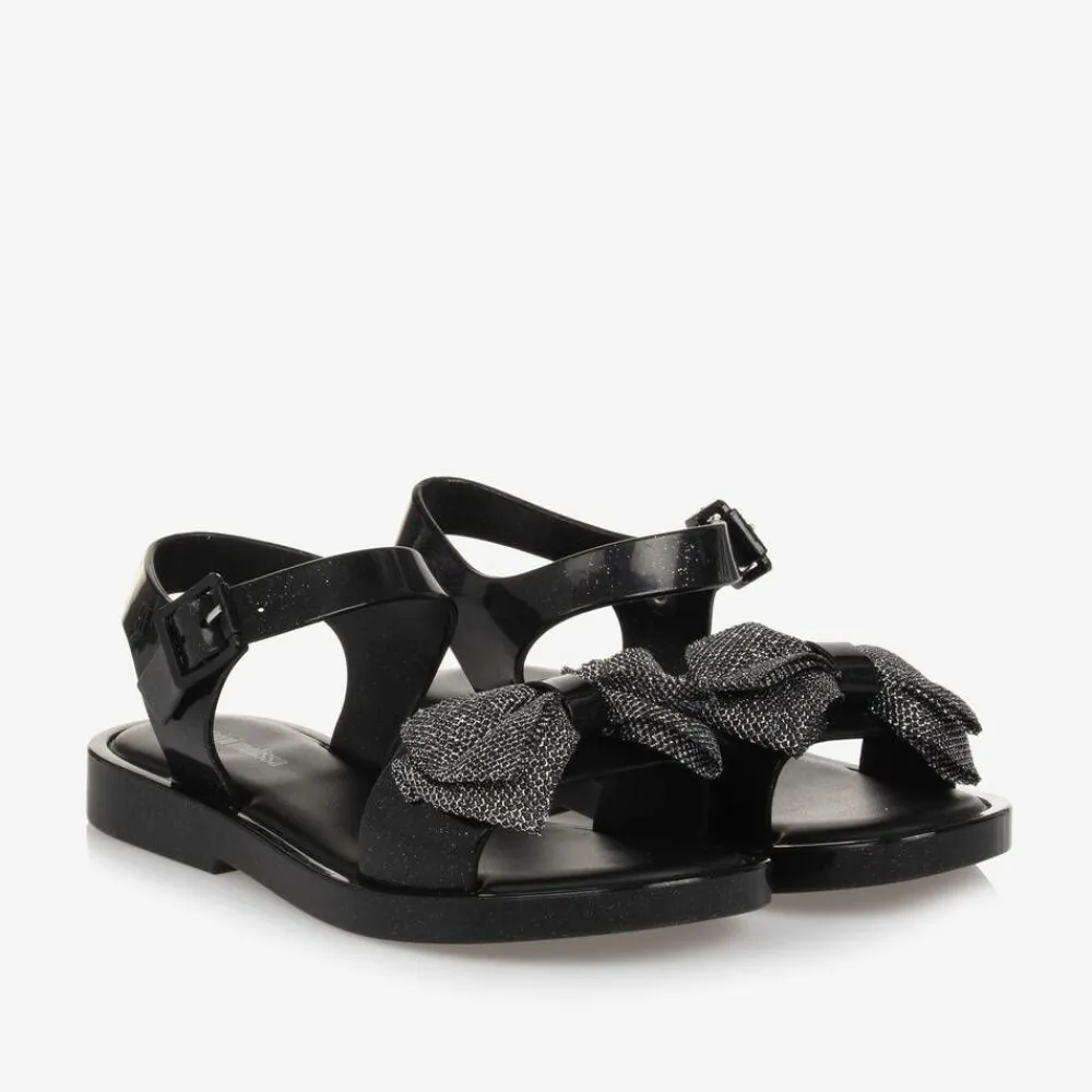 Mini Melissa Sandals|Sandals*Girls Black Glitter Bow Jelly Sandals