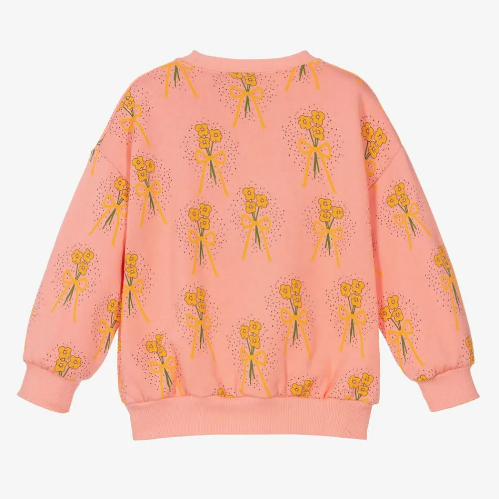 Mini Rodini Tops*Girls Pink Organic Cotton Floral Sweatshirt