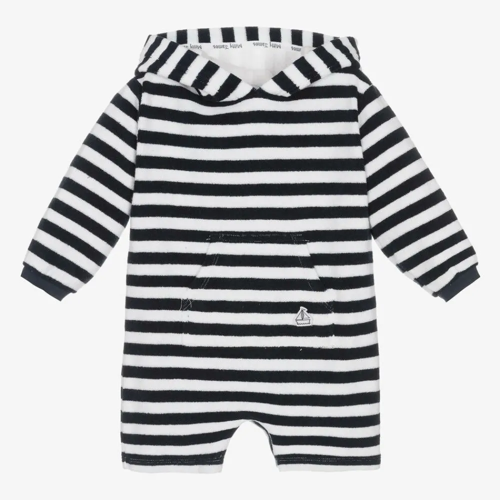 Mitty James Swimwear|Swimwear*Navy Blue Stripe Towelling Baby Beach Romper