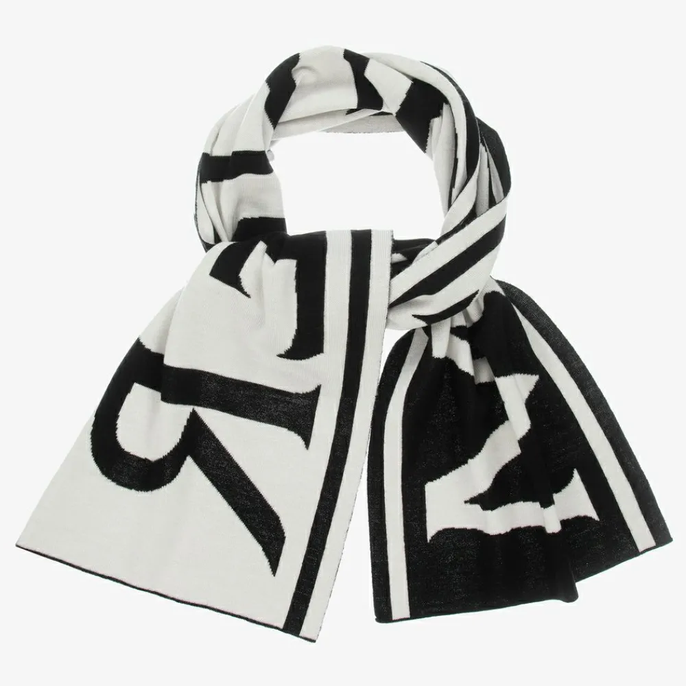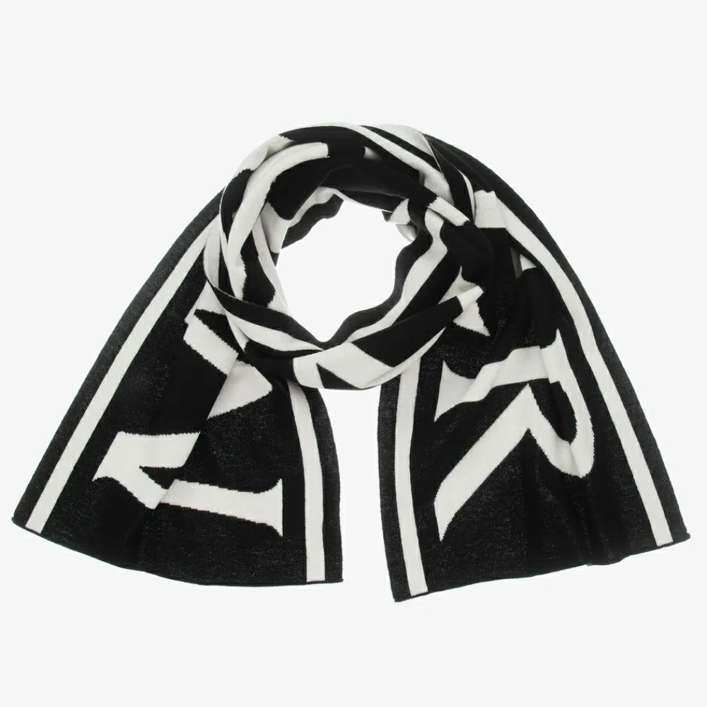 Moncler Enfant Scarves|Scarves*Black & Ivory Logo Wool Scarf