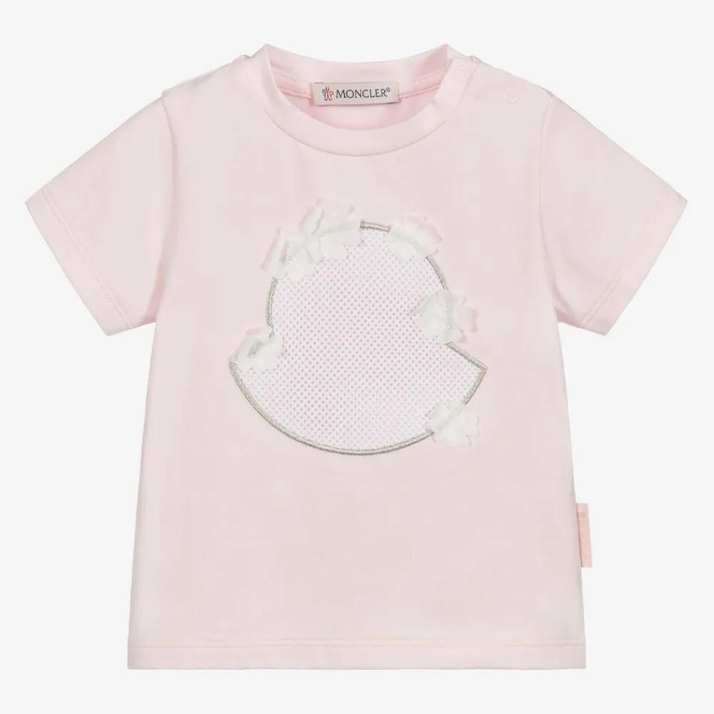 Moncler Enfant Tops*Pale Pink Logo Baby T-Shirt