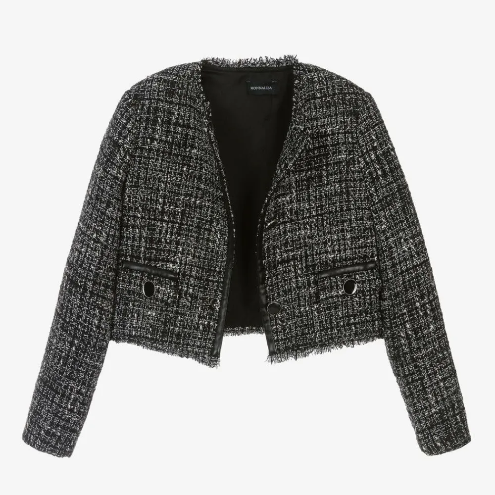 Monnalisa Coats & Jackets*Girls Black Bouclé Tweed Jacket