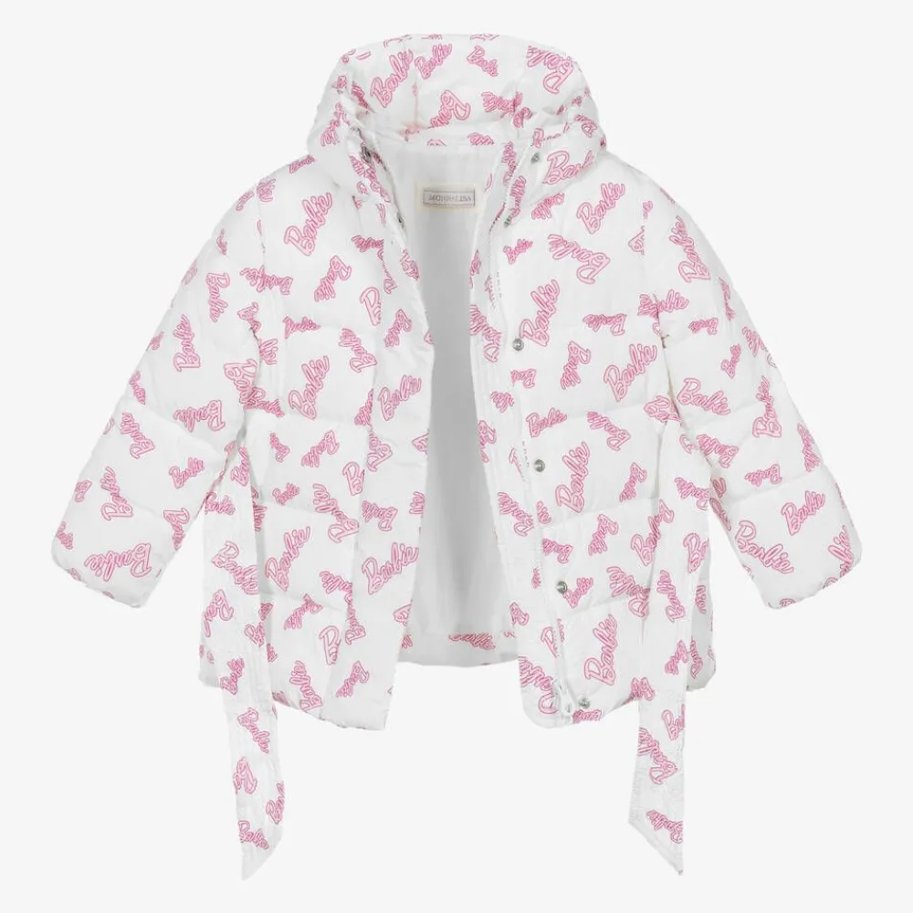 Monnalisa Coats & Jackets*Girls White & Pink Puffer Barbie Coat