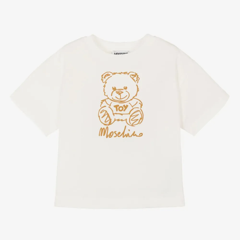 Moschino Kid-Teen Tops*Ivory Cotton Teddy Bear T-Shirt