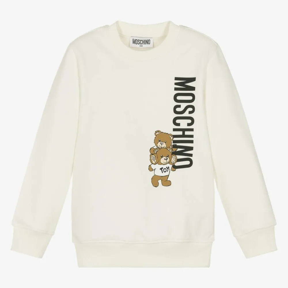Moschino Kid-Teen Tops|Tops*Ivory Cotton Teddy Bear Sweatshirt