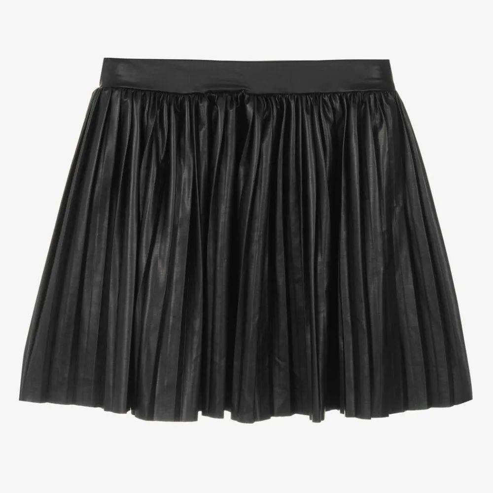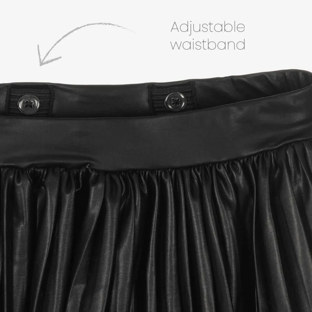 Stylish, black faux leather pleated skirt for girls from Danish brand, Name It. This easy-to-wear design has a comfortable, elasticated waistband, adjustable for a great fit.