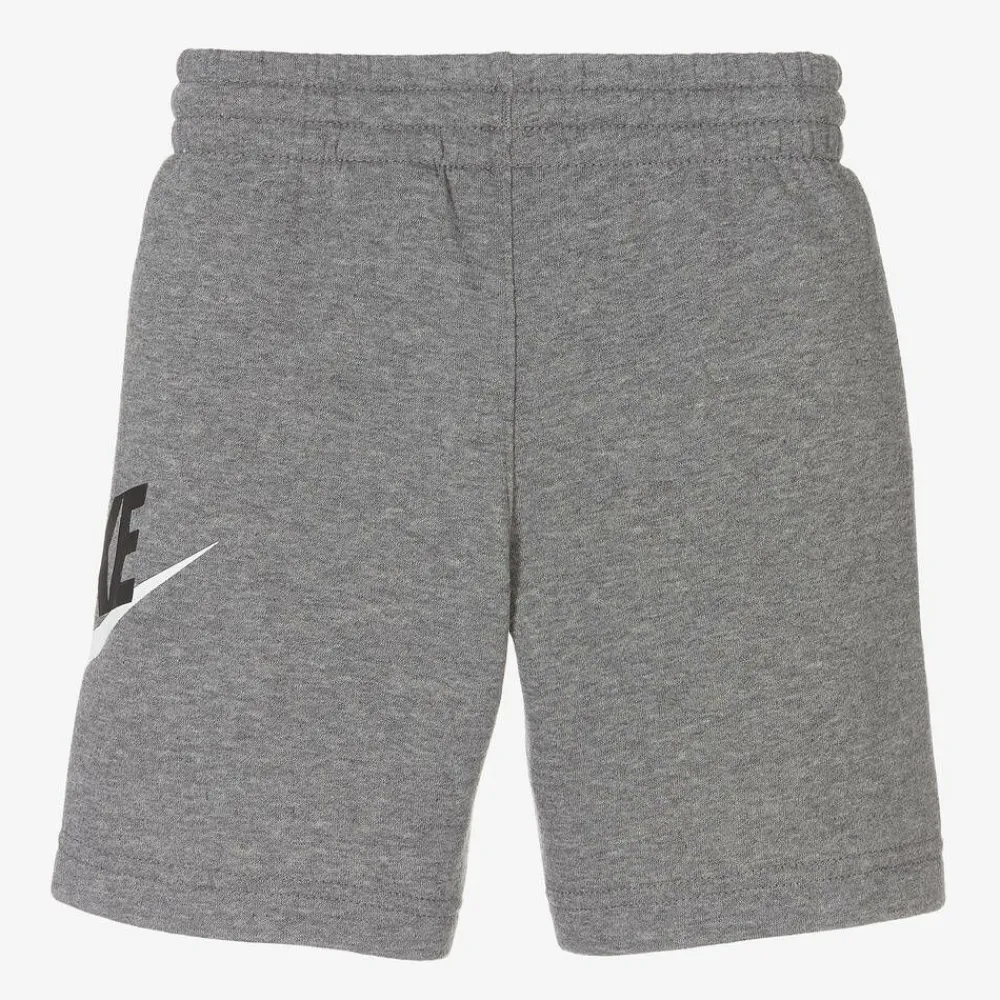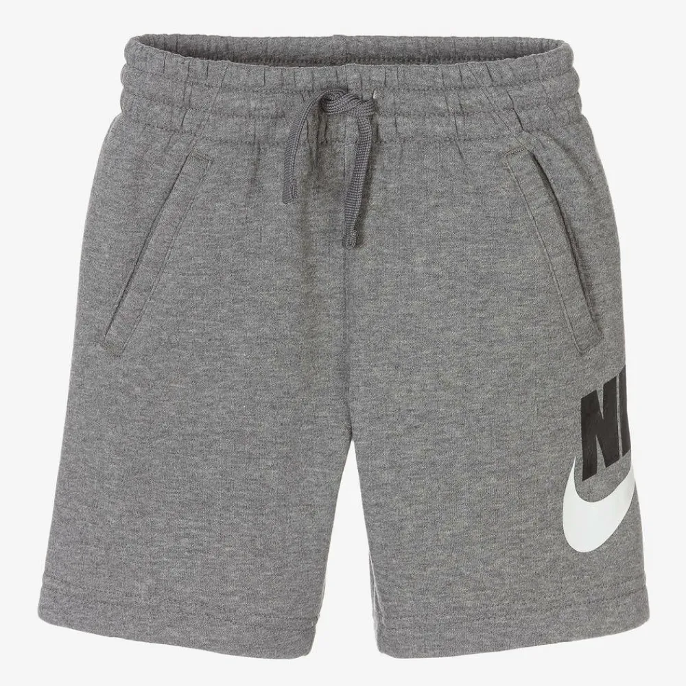 Grey marl cotton jersey shorts for boys by Nike. Easy to wear, they have an elasticated waist which can be adjusted with the drawstring for a better fit and two front pockets. The instantly recognisable Swoosh logo is printed in black and white on the side.