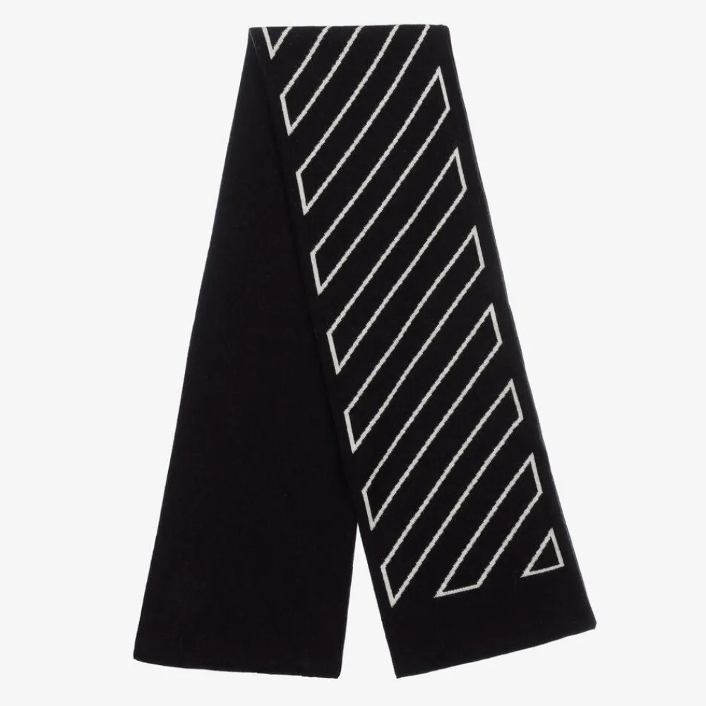 Instantly recognisable, this black scarf for boys by Off-White is patterned with the streetwear brand's signature diagonal stripe in white. Super soft and cosy, it is knitted in a luxurious, double layer wool and cotton blend, ideal for an effortlessly stylish look on cooler days.