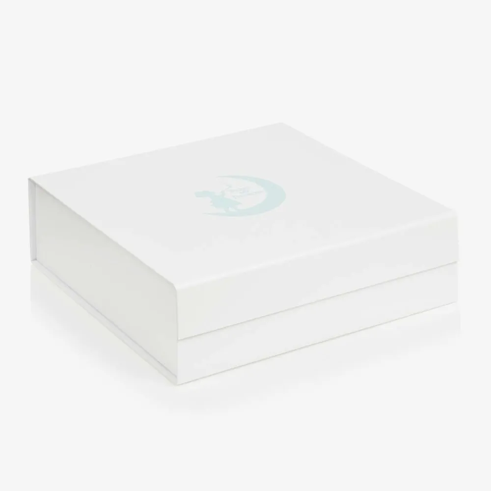 Knitted in soft cotton, this white blanket for baby boys and girls by Paint My Dreams, is ideal for the festive season. Featuring a cute reindeer and shimmery snowflakes, this cosy nursery accessory can be embroidered with your little one's name. A thoughtful gift for a special new arrival, it comes beautifully presented in a branded box.