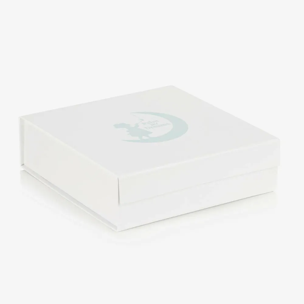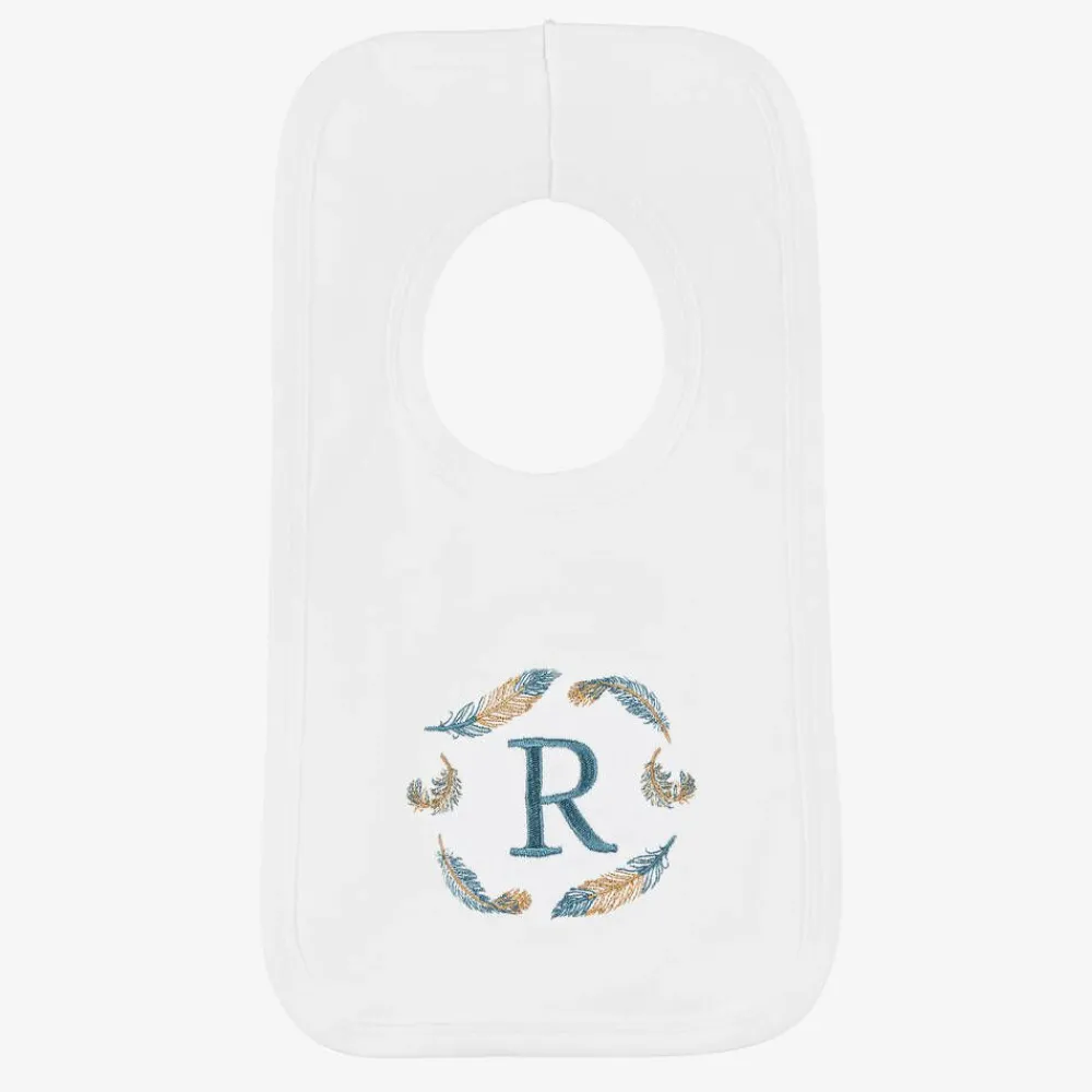 White cotton babysuit gift set for little boys and girls by Paint My Dreams, exclusive to Childrensalon. Lovely as a thoughtful gift for a special new arrival, each of the pieces are delicately embroidered with your child's name, initial and sweet feathers. The babygrow has a wide, envelope neckline to help with dressing and useful poppers between the legs. The dribble bib fastens with a popper on the back of the neck. An adorable layette hat completes the lovely set, which is beautifully presented in a branded gift box.