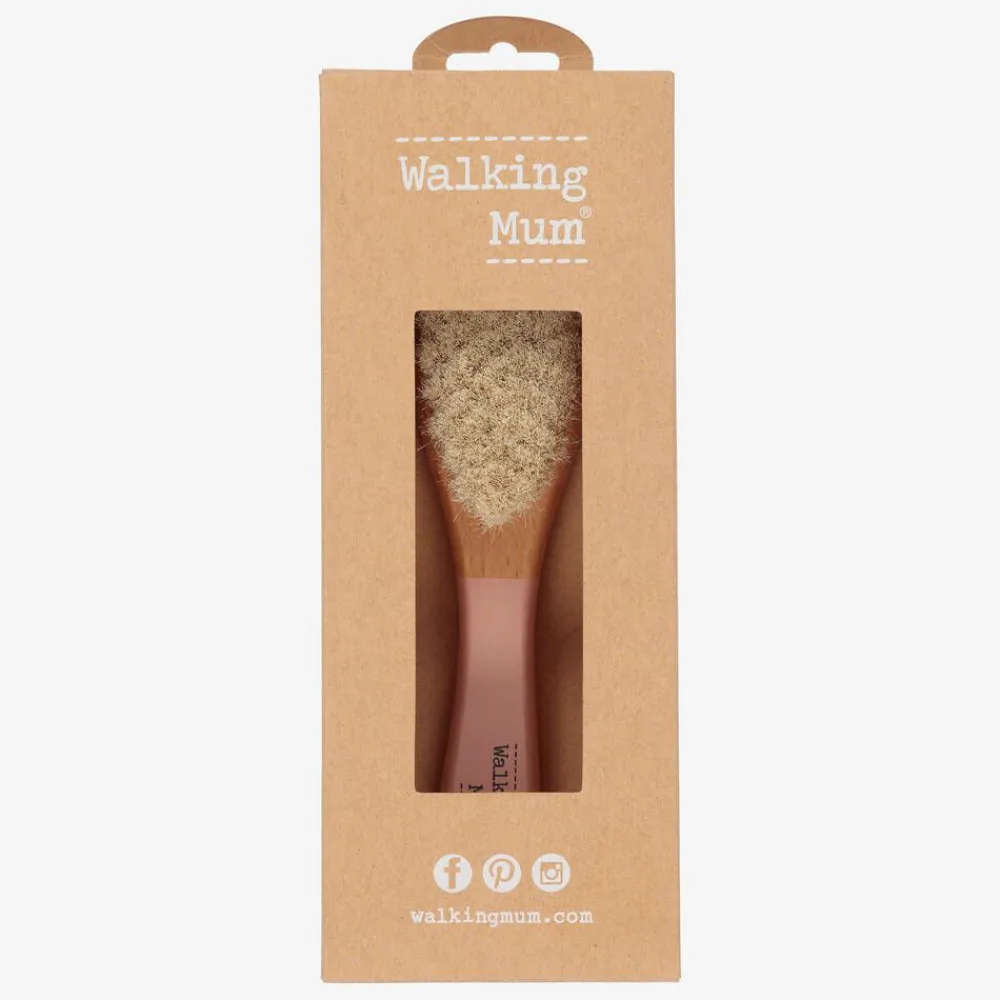 A lovely beige hair brush for baby girls from Pasito a Pasito Walking Mum. This classic wooden brush has rounded edges and a pink painted handle. The soft, natural bristles are just right to care for baby's hair.