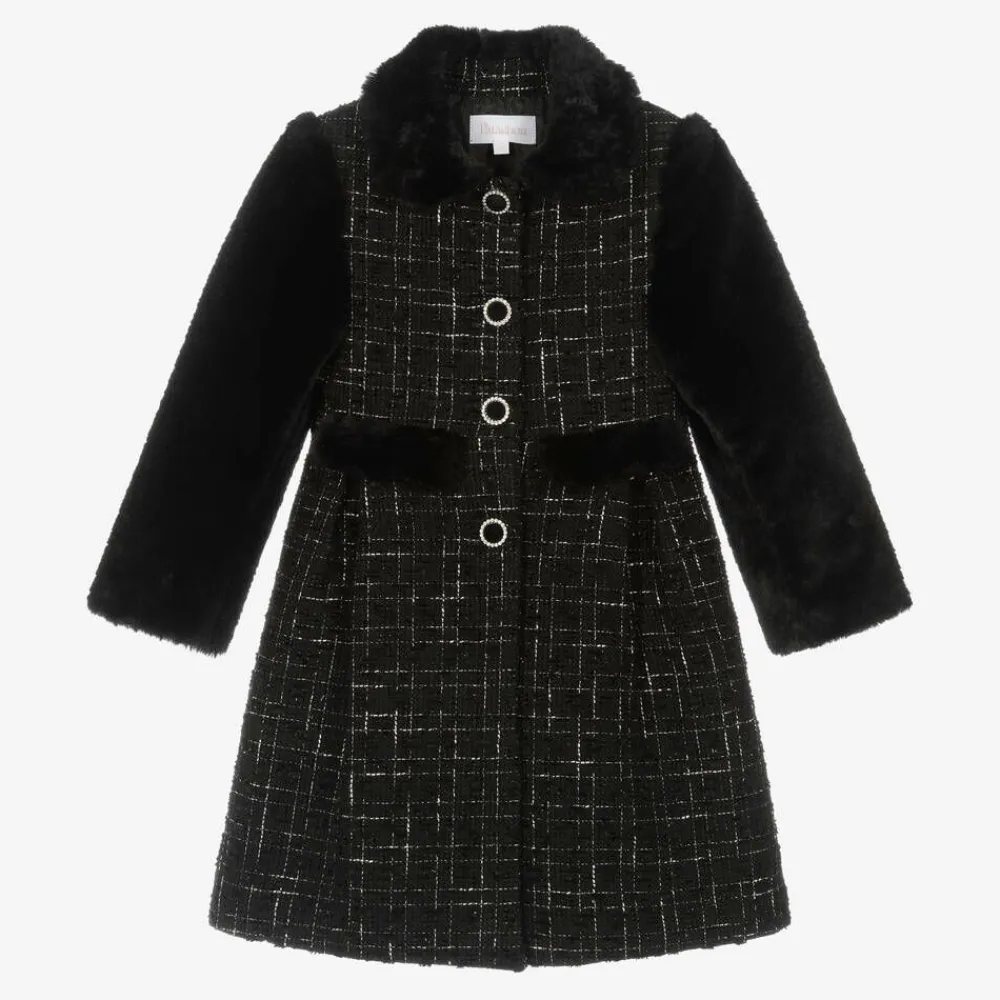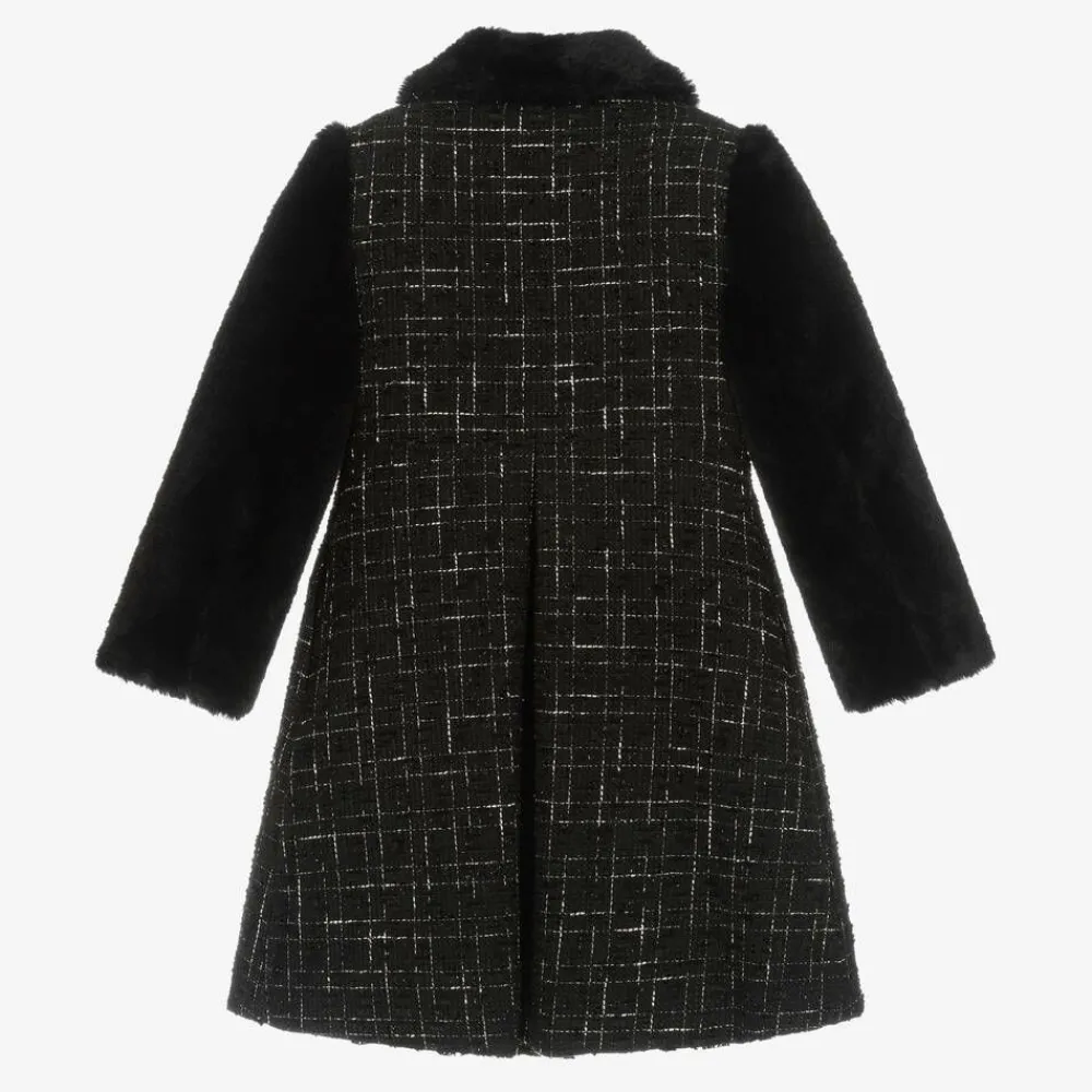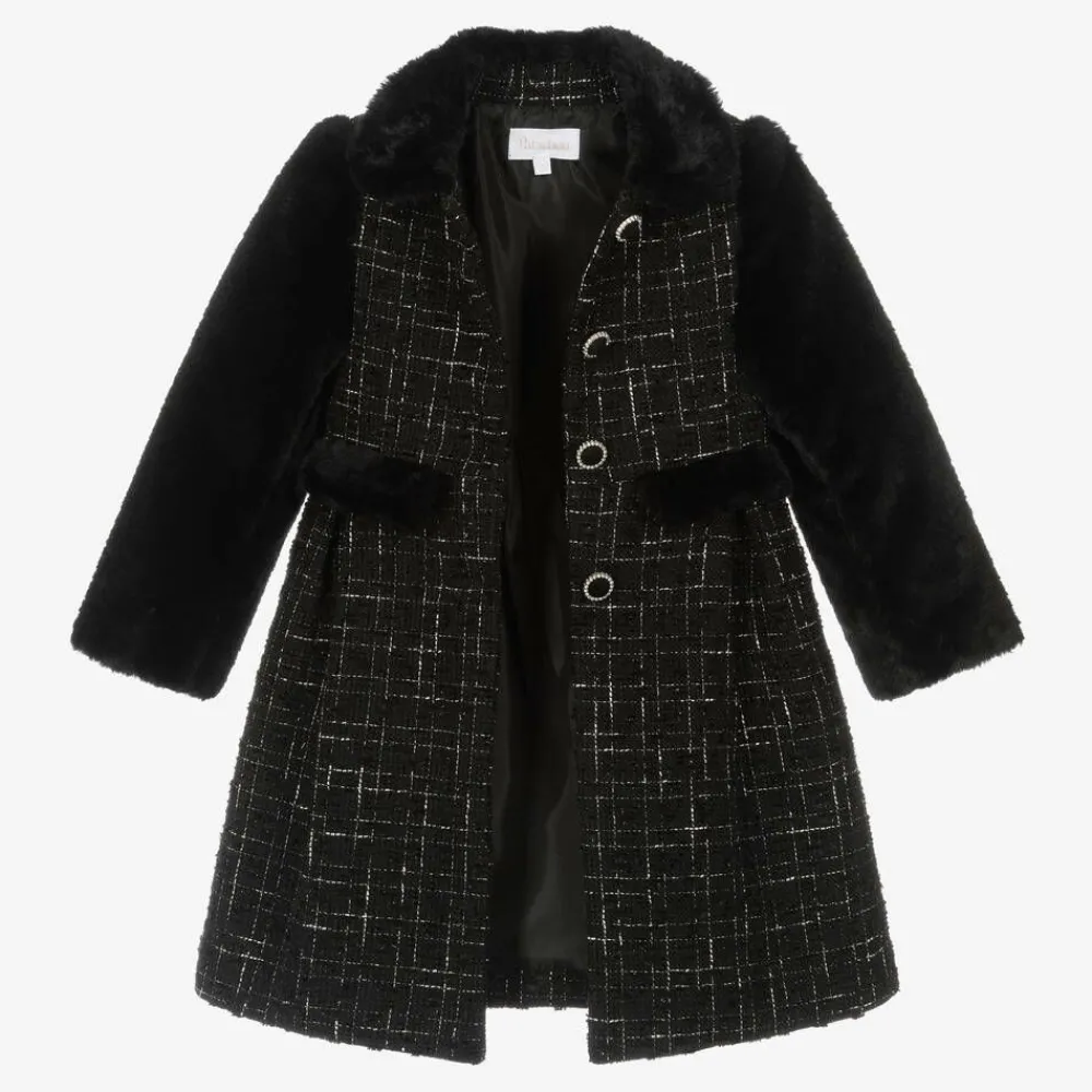 Patachou Coats & Jackets*Girls Black Tweed & Faux Fur Coat