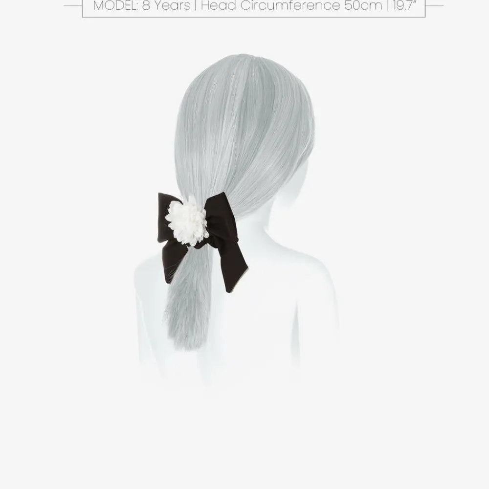 Exclusive to Childrensalon, a special occasion black bow hair scrunchie for girls by Patachou. Made in smooth fabric for comfortable wear, it is embellished with a beautiful white flower decoration. An elegant design, it is sure to add a touch of sophistication to her outfit.
