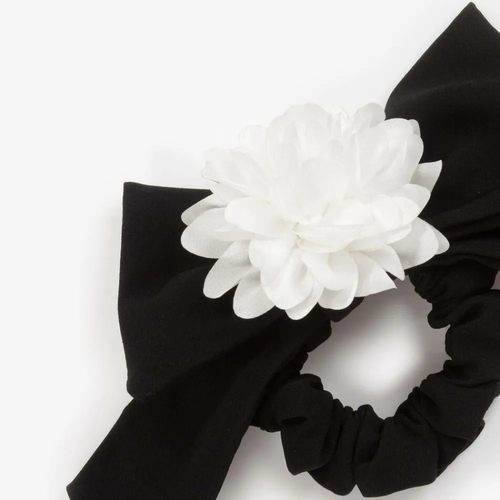 Patachou Hair Accessories*Girls Black Bow & Flower Hair Elastic