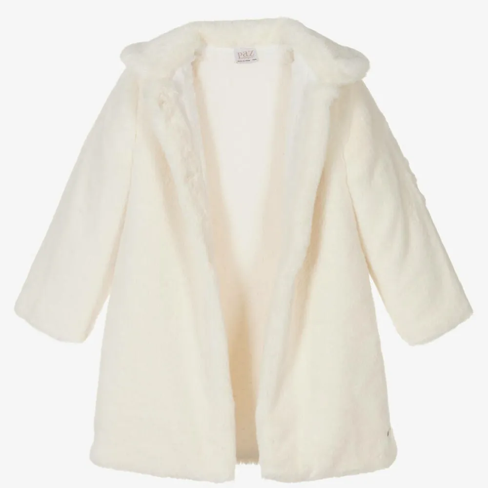 Paz Rodríguez Coats & Jackets*Girls Ivory Faux Fur Coat
