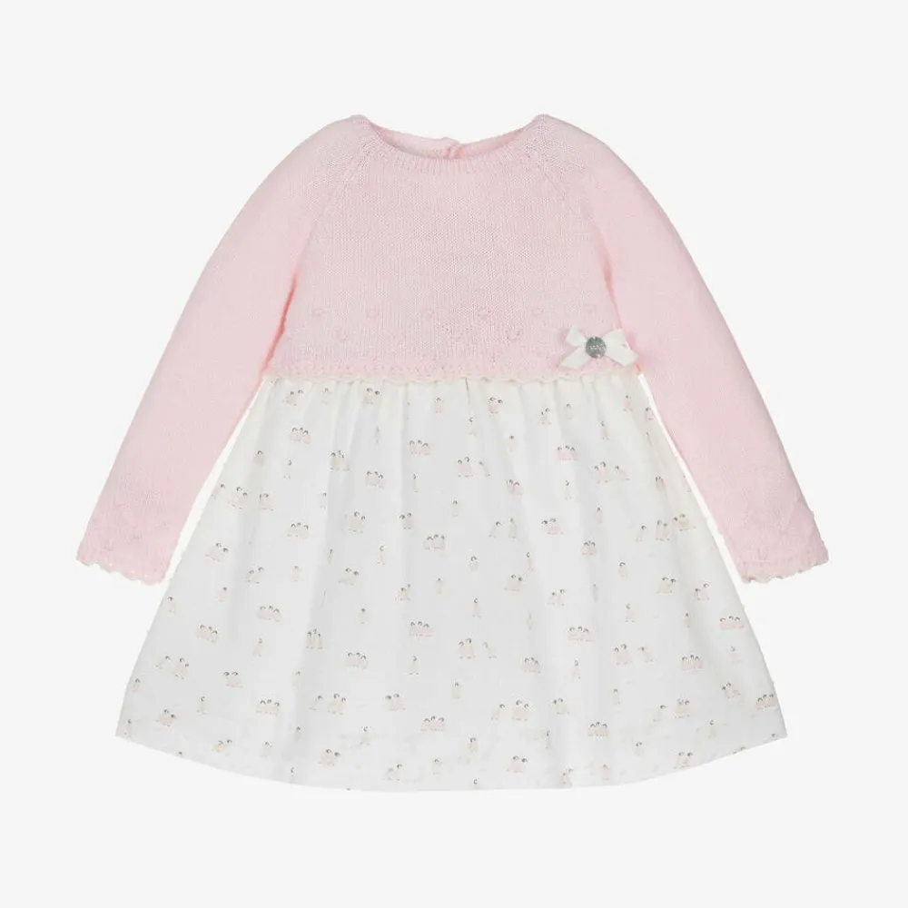 Paz Rodríguez Dresses*Baby Girls Pink Penguin Wool & Cotton Dress