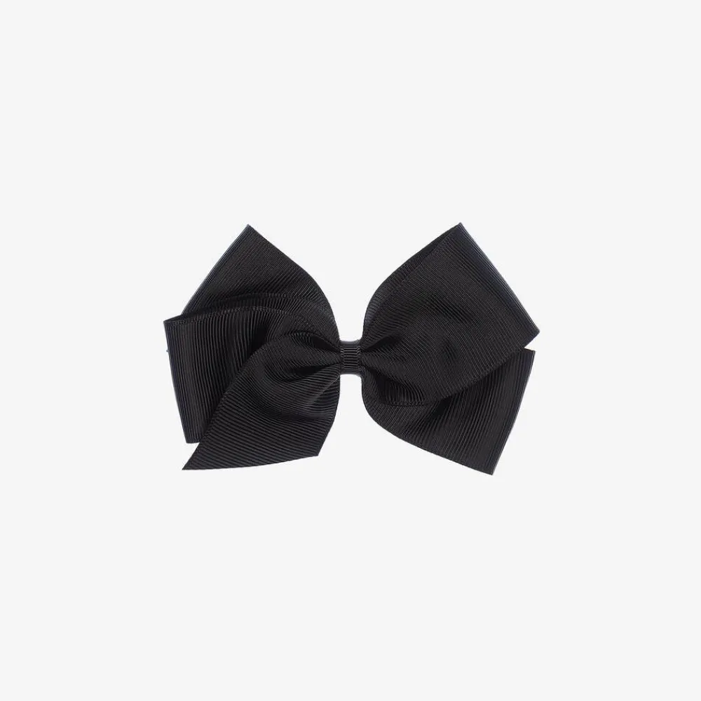 Girls smart black bow hair clip by Peach Ribbons, handmade from grosgrain ribbon and set on a metal clip.