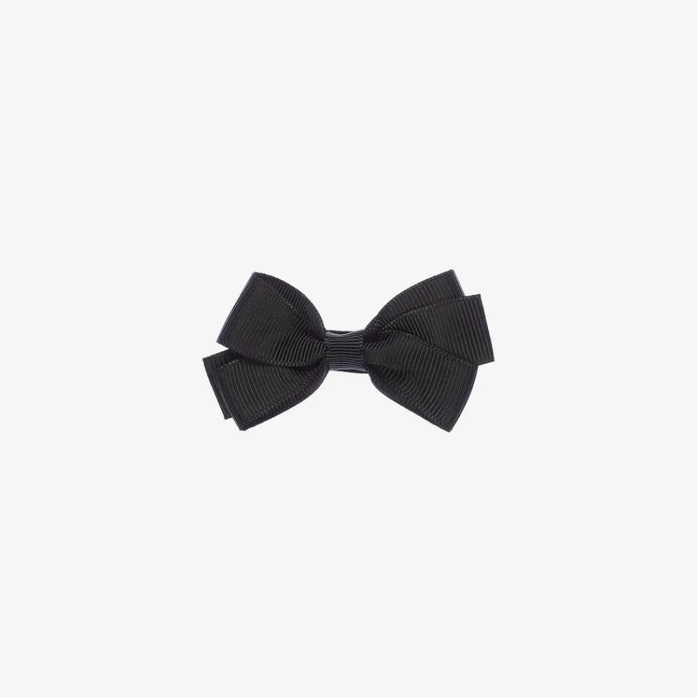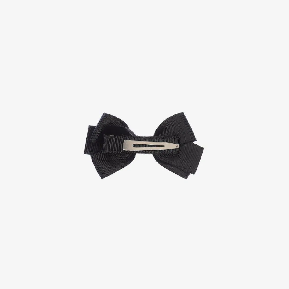 Girls pretty black bow hair clip by Peach Ribbons. Lovely to complete an outfit, this hair accessory is made in grosgrain ribbon and set on a metal clip.