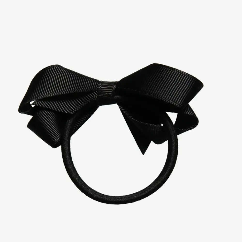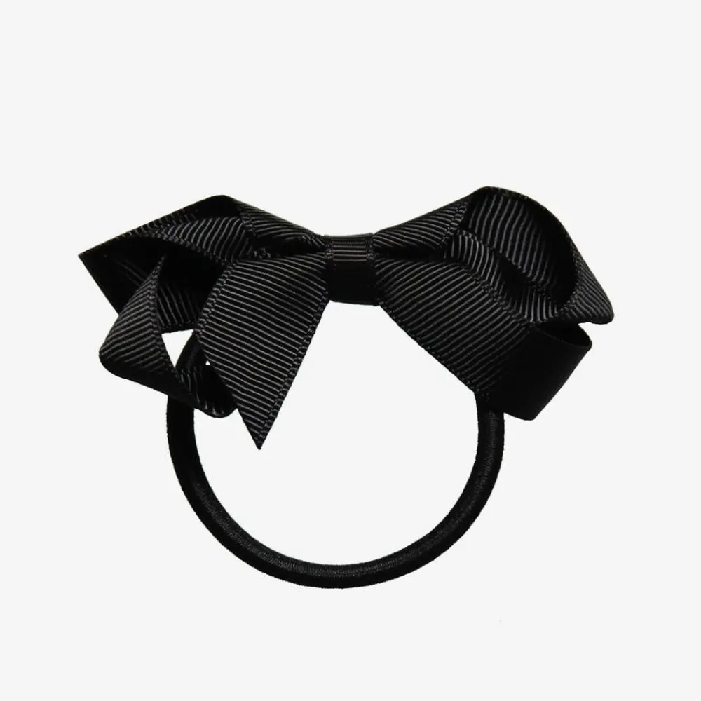 Girls classic hair elastic with a black grosgrain ribbon bow by Peach Ribbons.