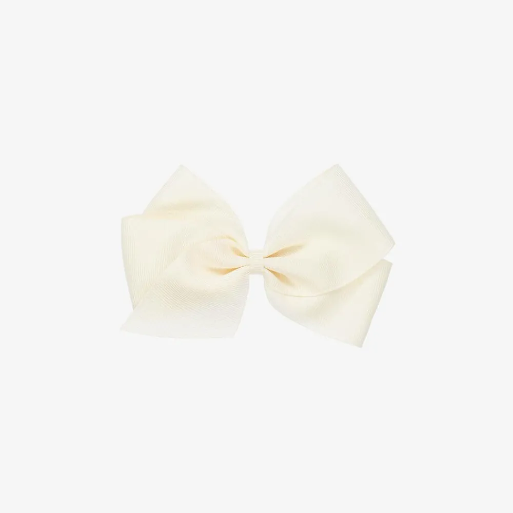 Girls lovely ivory bow hair clip by Peach Ribbons, handmade from grosgrain ribbon and set on a metal clip.