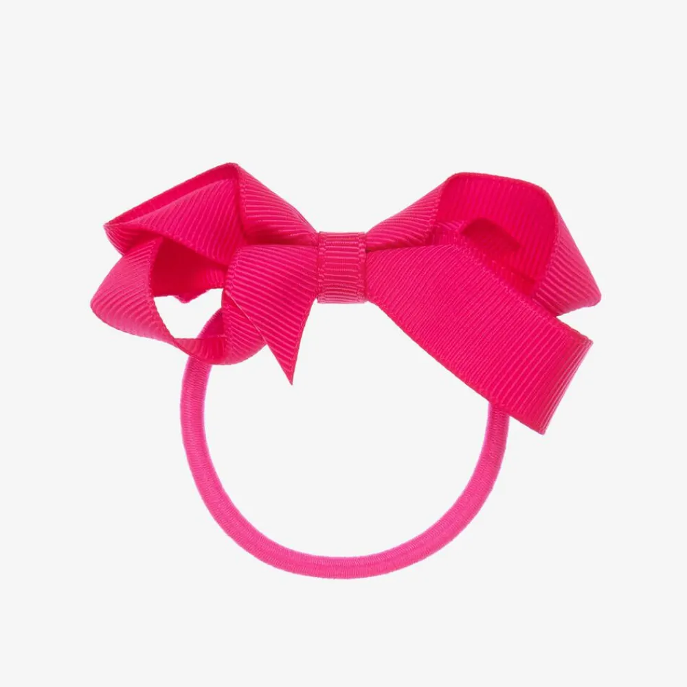 Girls classic hair elastic with a fuchsia pink grosgrain ribbon bow by Peach Ribbons.