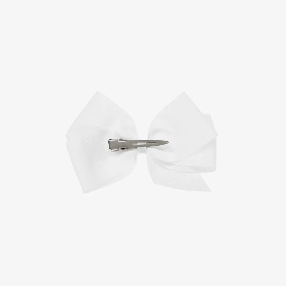Girls lovely white bow hair clip by Peach Ribbons, handmade from grosgrain ribbon and set on a metal clip.