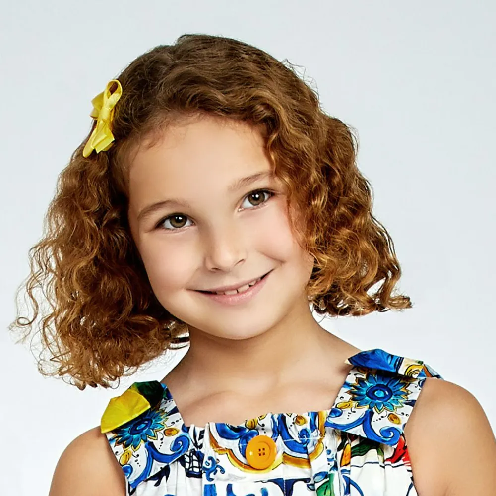 Girls pretty yellow bow hair clip by Peach Ribbons. Lovely to complete an outfit, this hair accessory is made in grosgrain ribbon and set on a metal clip.