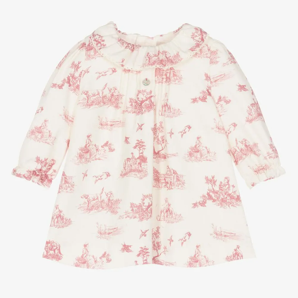 Pureté Du… Bébé Dresses*Girls Ivory & Pink Toile de Jouy Dress