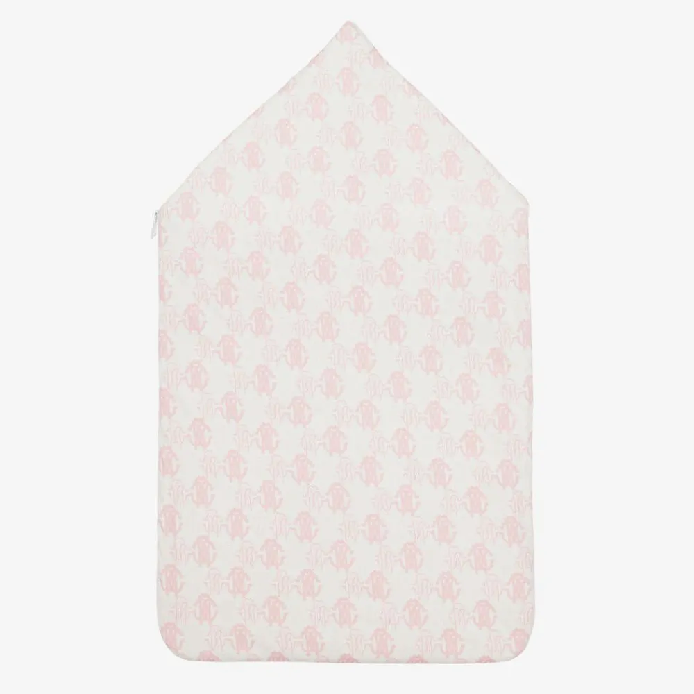 Roberto Cavalli Nests*Ivory & Pink Cotton Monogram Baby Nest (73cm)