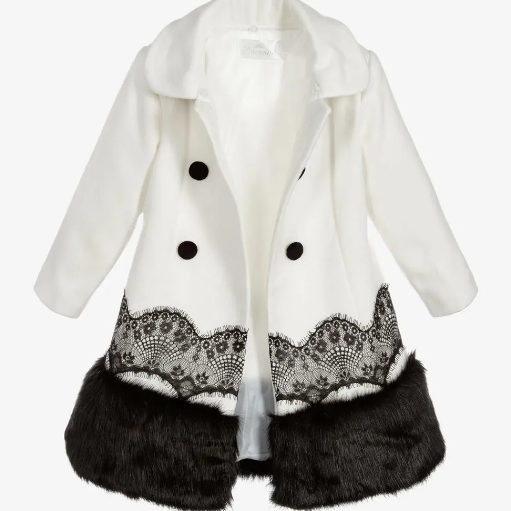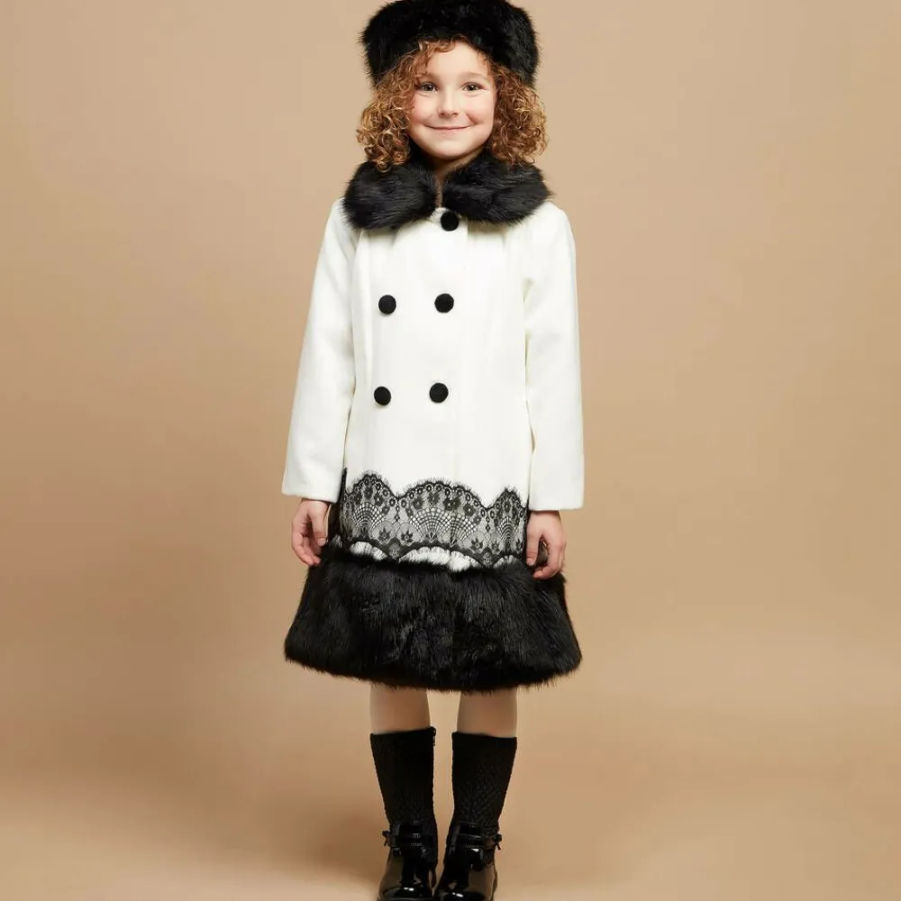 Romano Princess Coats & Jackets*Girls Ivory Coat & Faux Fur Hat Set