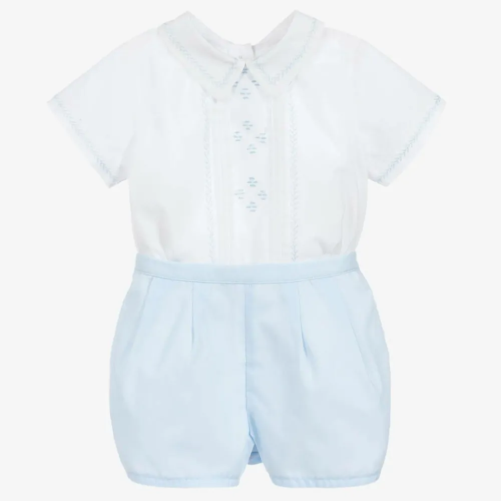 Sarah Louise Outfit Sets*Boys White & Blue Shorts Set