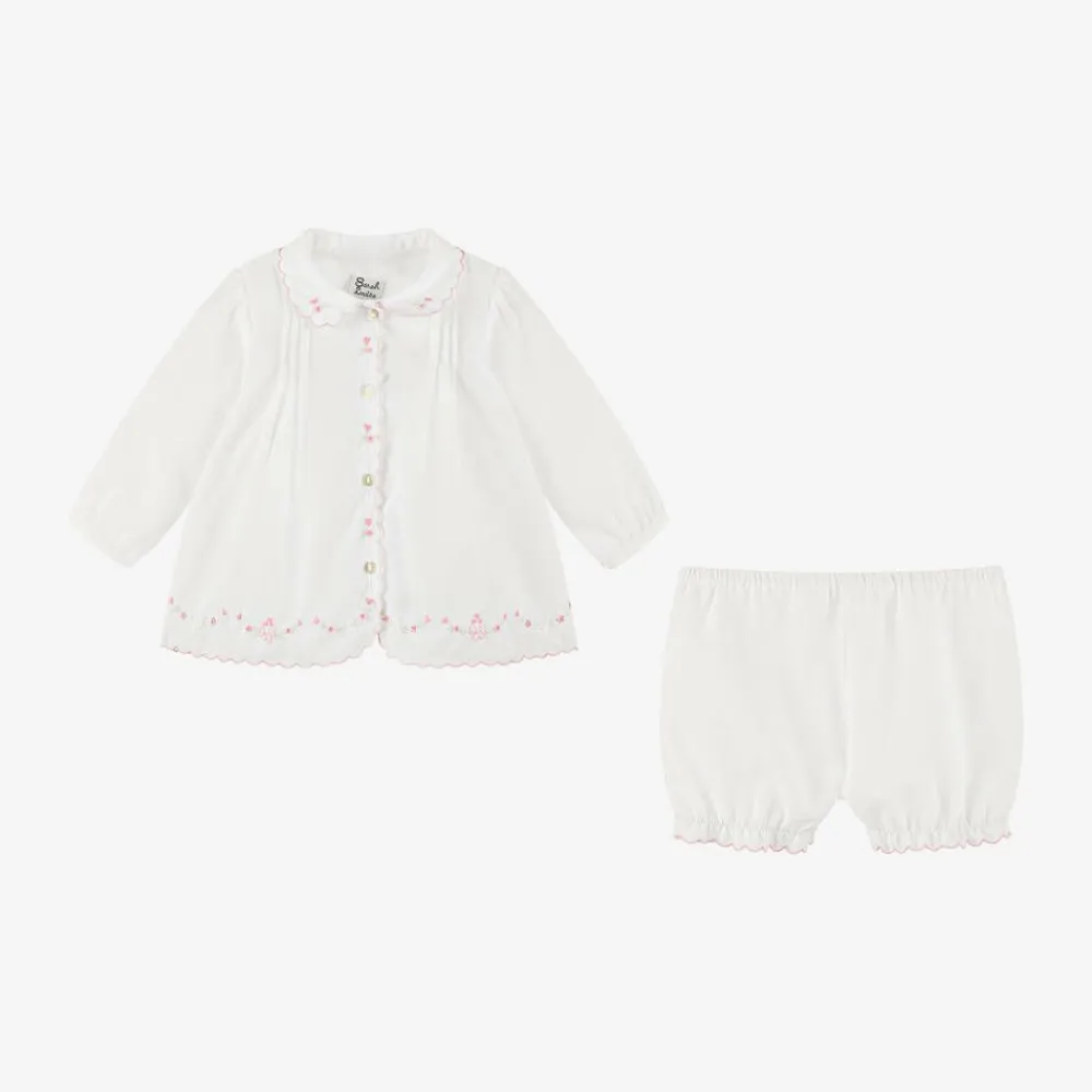 Sarah Louise Outfit Sets*White Cotton Baby Shorts Set