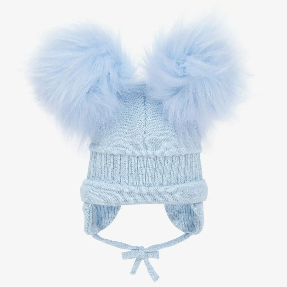 Absolutely adorable, this pale blue winter hat for little boys and girls is by Sätila of Sweden. Made from a soft knit with a ribbed panel, there are two large faux fur pom-poms on top for a cute look. Lined in lightweight cotton jersey for extra comfort, it has sweet ear flaps with ties that fasten under the chin.