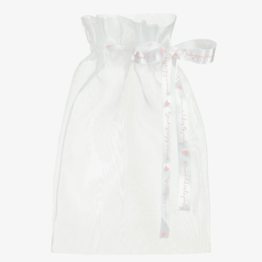 White handmade beaded tiara for girls by Sienna likes to party. So lovely for a special occasion, it has a white satin-wrapped metal band topped with stunning crystal and pearl beads.