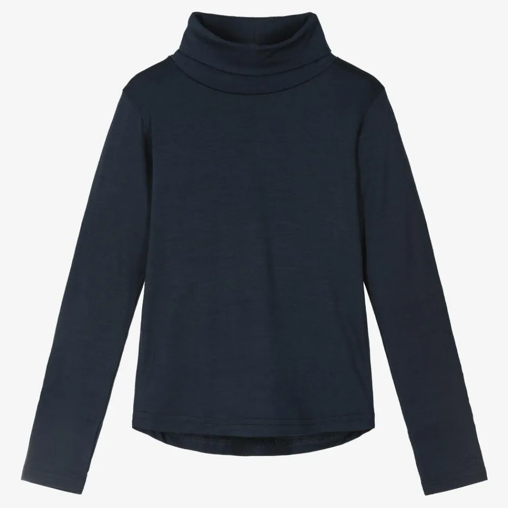Smalls Merino Tops*Navy Blue Merino Wool Roll Neck Top