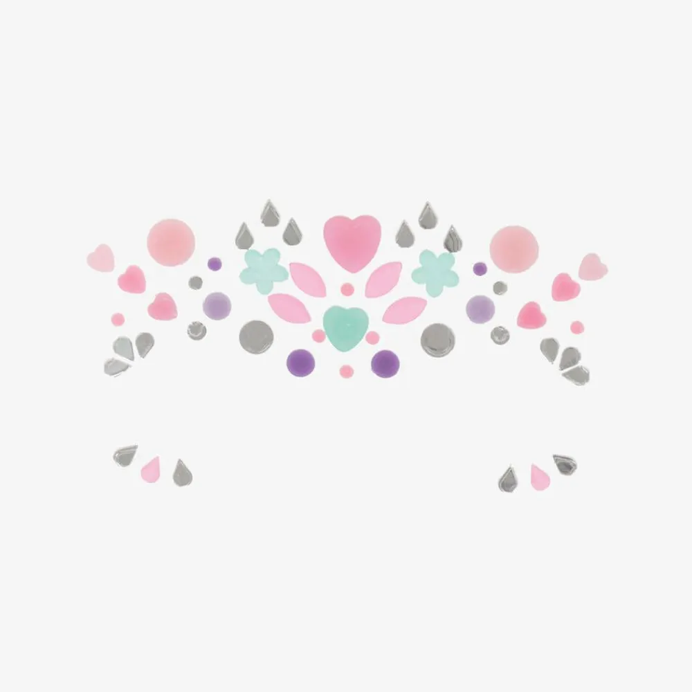 In pretty pastel shades of pink, green, and purple, these gem makeup face stickers for girls are by Souza. Ideal for a glamorous party look, they feature faux pearls and jewels for a sparkly and eye-catching finish. The elaborate design is easy to peel off intact and apply onto the face and can be re-stuck to the sheet afterwards for re-use at other special occasions until the sticky wears off.