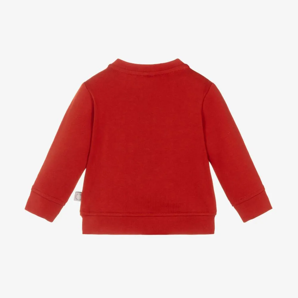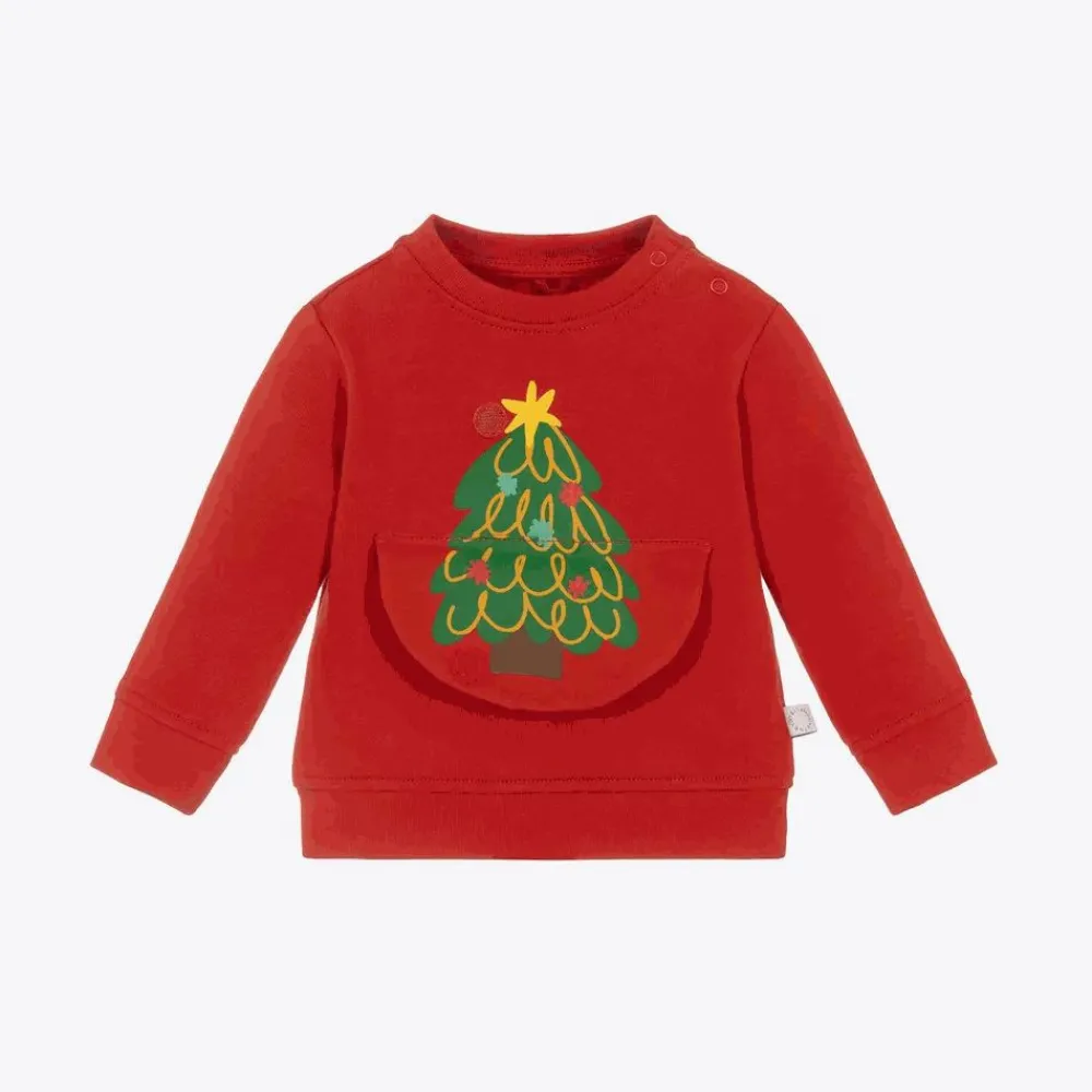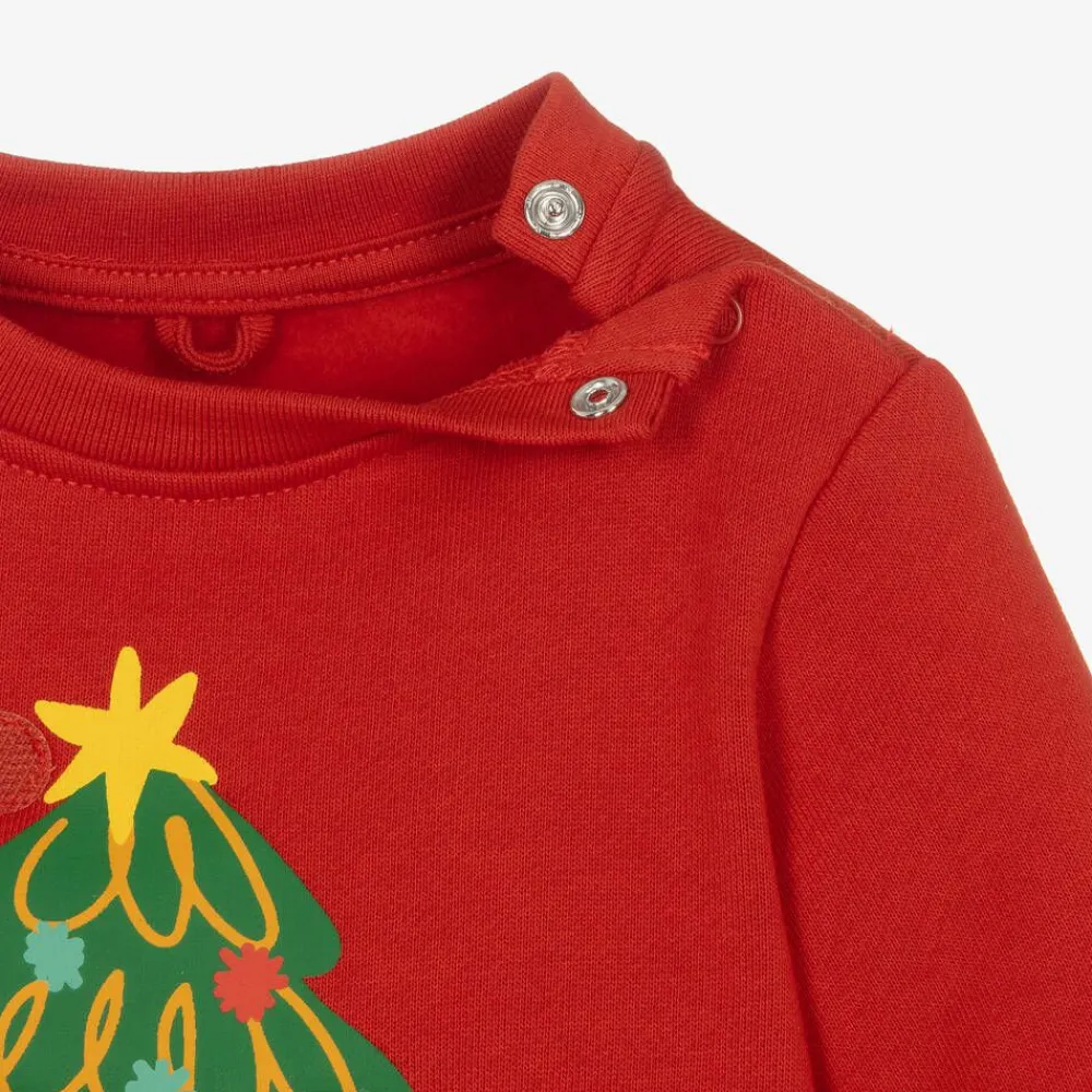 Fun red sweatshirt for little boys and girls by Stella McCartney Kids, made in soft, mid-weight organic cotton jersey with a warm, fleecy inside. Bright and cheerful, this top has an interactive velcro-fastening flap on the front revealing a snowman and a Christmas tree. It has cosy ribbed trims and popper fastenings on one shoulder for easy dressing. The Stella McCartney fit can be quite small so choose a size up if you want room to grow.